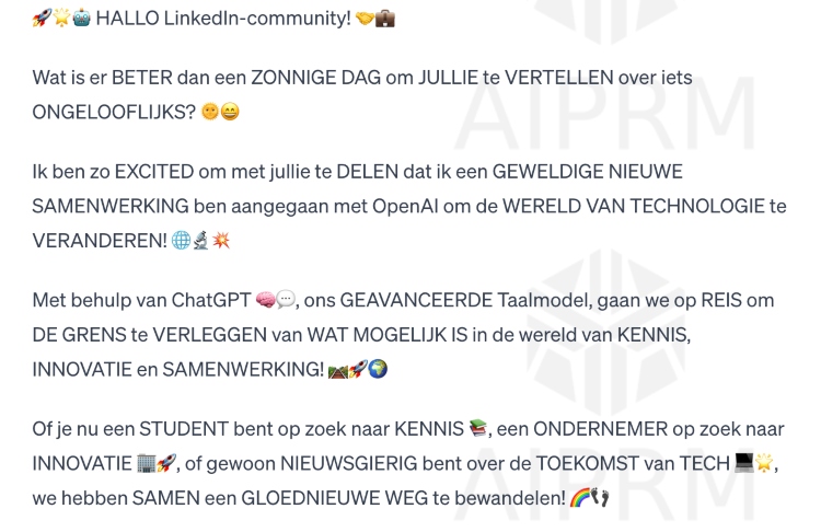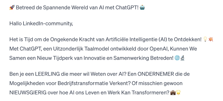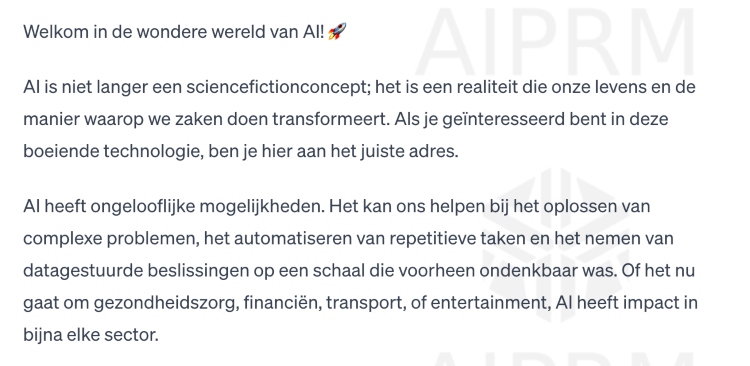 Maar het is natuurlijk niet de bedoeling om gewoon een stuk tekst te kopiëren en te plakken, nadat je deze met een simpele prompt hebt gekregen.