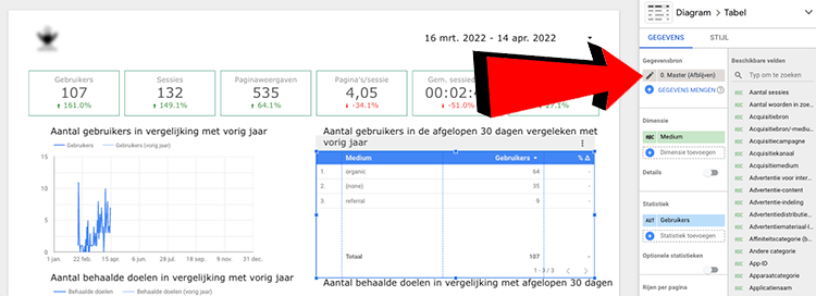 Ga naar je Google Stadio rapportage, klik op bewerken en klik vervolgens de tabel aan waar je de paramaters wilt toevoegen wilt toevoegen.
