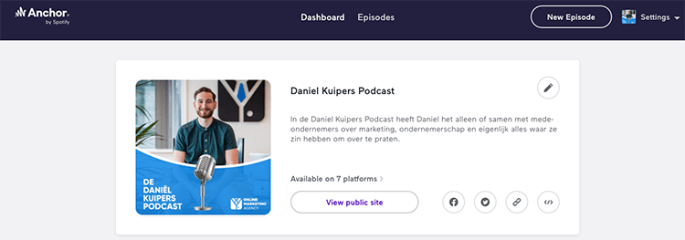 Ps. Mocht je benieuwd zijn hoe een gevuld Anchor.fm account eruit ziet, klik dan hier: https://anchor.fm/danielkuipers.