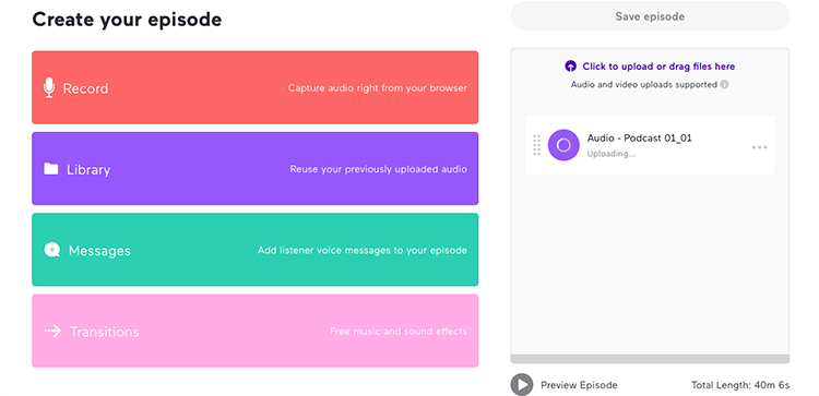 Ik ga ervan uit dat je de podcast al helemaal af hebt en klaar hebt staan. Sleep in dat geval de podcast naar het blok waar ‘Your Episode’ staat.