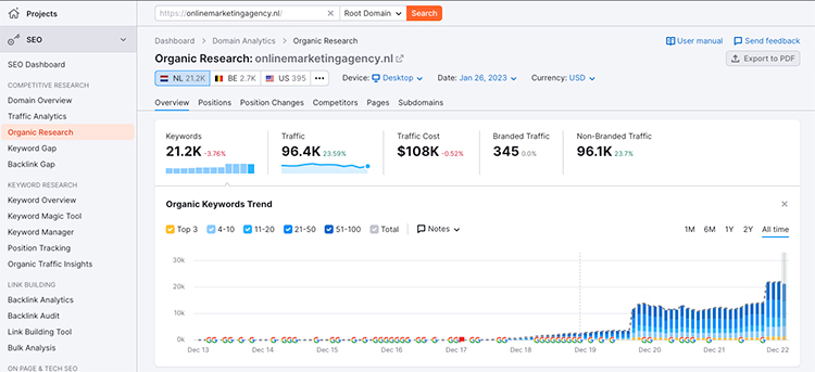 Nou, dan zijn er twee tools die je kunnen helpen. En dan is Semrush toch echt mijn favoriet.