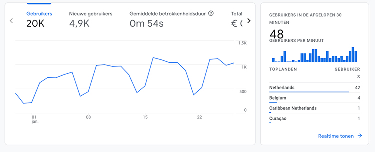 Als je Google Analytics hebt geïnstalleerd, dan kan je het volgende zien: