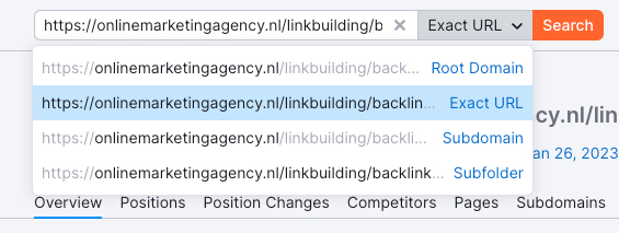 Vul de URL dan op dezelfde plek in, maar kies wel voor ‘Exact URL’.