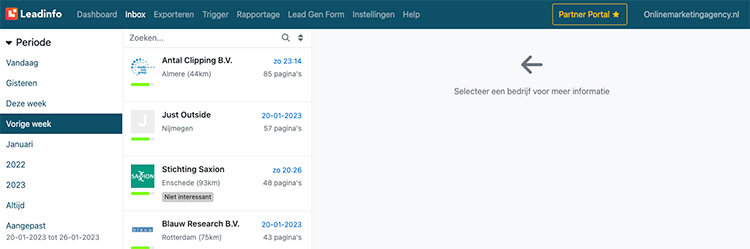 Daar zijn ook verschillende tools voor. Wij gebruiken, en adviseren onze klanten, altijd dezelfde tool: Leadinfo.