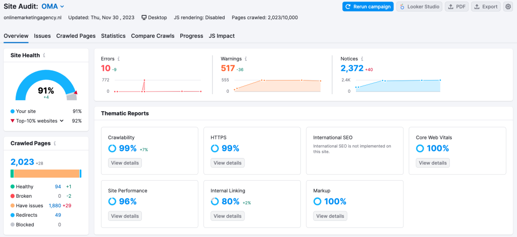Dit is iets waar ik van vind dat Semrush in excelleert ten opzichte van andere SEO-tools. Semrush is in mijn optiek één van de meest uitgebreide technische SEO tools.