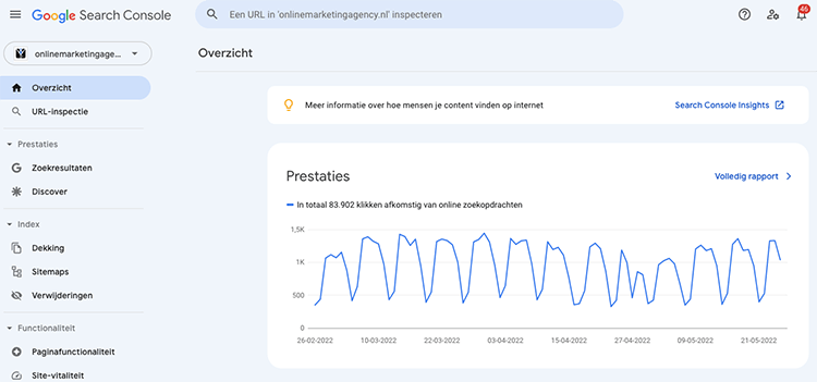 Ga naar Search Console, klik de juiste website aan en klik links op Dekking.