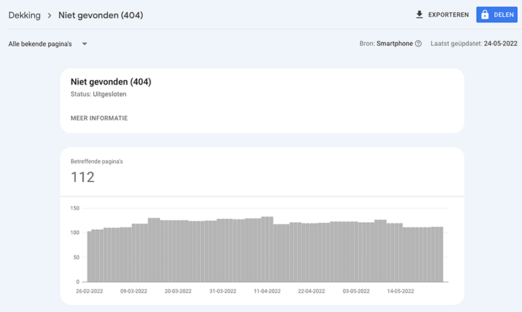• Export van de 404’s in Search Console (om de 404’s op te lossen)