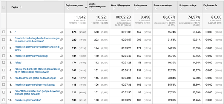 Wie denk je dat er gaat winnen: Pietje met een one page website met 1000 woorden of Jantje met een complete website met blogs, landingspagina’s, etc?